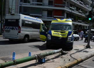 Ασθενοφόρο «καρφώθηκε» σε κολώνα στην Βασιλέως Κωνσταντίνου