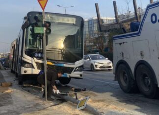 Σε φανάρι προσέκρουσε λεωφορείο 305 στη Λεωφόρο Μεσογείων λίγο μετά τις 16:30.