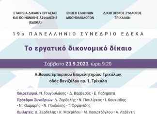 Το 19ο Πανελλήνιο Συνέδριο της ΕΔΕΚΑ, σε συνεργασία με την Ένωση Ελλήνων Δικονομολόγων και τον Δικηγορικό Σύλλογο Τρικάλων, θα πραγματοποιηθεί στα Τρίκαλα το Σάββατο 23 Σεπτεμβρίου 2023. Το πρόγραμμα-πρόσκληση είναι αναρτημένο εδώ.
