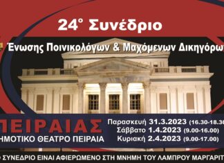 Με πολλούς δικηγόρους και ακαδημαϊκούς αρχίζει στις 31 Μαρτίου το 24ο Συνέδριο της Ένωσης Ποινικολόγων και Μαχόμενων Δικηγόρων, το οποίο θα ολοκληρωθεί την Κυριακή...