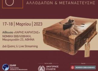 Η Ένωση Δικαίου Αλλοδαπών και Μετανάστευσης (ΕΔΑΜ) υπό την αιγίδα του Δικηγορικού Συλλόγου Αθηνών διοργανώνουν την Παρασκευή 17 και το Σάββατο 18 Μαρτίου το 6ο Πανελλήνιο...