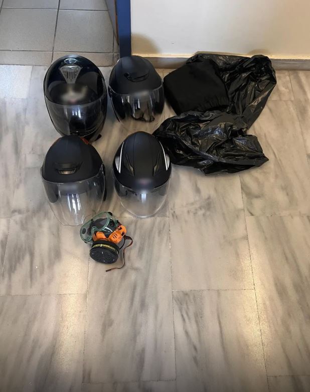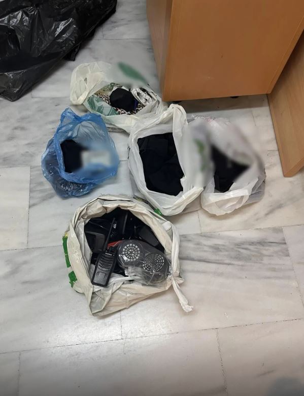 Σύμφωνα με την ανακοίνωση, κατά τις έρευνες που πραγματοποιήθηκαν εντοπίστηκαν, μεταξύ άλλων, ρόπαλα, αυτοσχέδιες πλαστικές ασπίδες, πυροσβεστήρες, ασύρματος και σφυριά.