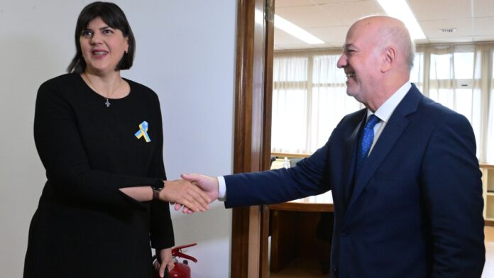 Η συνάντηση πραγματοποιείται στο πλαίσιο της επίσημης επίσκεψης που πραγματοποιεί η επικεφαλής της Ευρωπαϊκής Εισαγγελίας στην Ελλάδα.